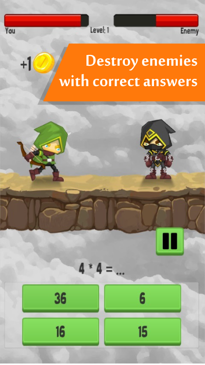 You will face different types of enemies and each of them will try to defeat your Hero. There is only one way to win a game – you should answer quicker than enemy strikes you. And don’t even try to cheat, because every wrong answer lets the monster to make an advanced hit.