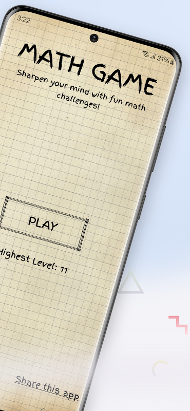 اپنے دماغ کو تفریحی، تیز رفتار ریاضی کی پہیلیاں کے ساتھ تربیت دیں جو آپ کی منطق اور اضطراب کی جانچ کرتی ہیں۔ دباؤ کے تحت ریاضی کے فوری مسائل حل کریں، ٹائمر کو شکست دیں، اور دیکھیں کہ آپ کا دماغ کس حد تک جا سکتا ہے! دماغی تربیت کو دلچسپ بنانے کے لیے ڈیزائن کیا گیا ہے، ہر سطح آپ کی ذہنی ریاضی کی مہارتوں کو تقویت دیتا ہے اور آپ کے دماغ کو تیز رکھتا ہے۔