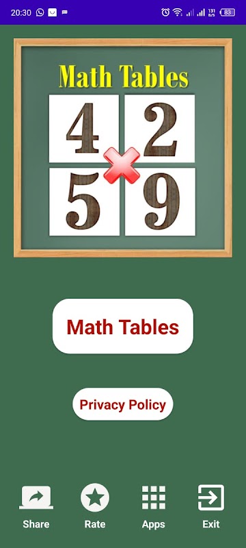 6. شیئر بٹن: ایپ میں ایک شیئر بٹن شامل ہے جو صارفین کو سوشل میڈیا پلیٹ فارمز کے ذریعے دوستوں اور کنبہ کے ساتھ ایپ کا اشتراک کرنے کے قابل بناتا ہے، دوسروں کے ساتھ ضرب کی میزیں سیکھنے کی خوشی کو پھیلاتا ہے۔