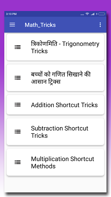 App provides largest collection of Math Tips,Tricks,Competitive,Exam,vedic,hindi