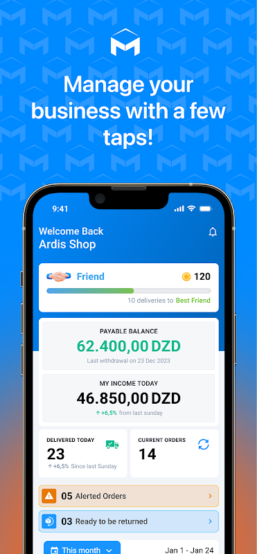 ہم آخر میں آخر تک رسد اور ترسیل کی خدمات پیش کرتے ہیں۔ می اسٹرو پارٹنرز ایپ کا استعمال کرکے ، آپ کو درج ذیل خصوصیات سے فائدہ ہوگا: