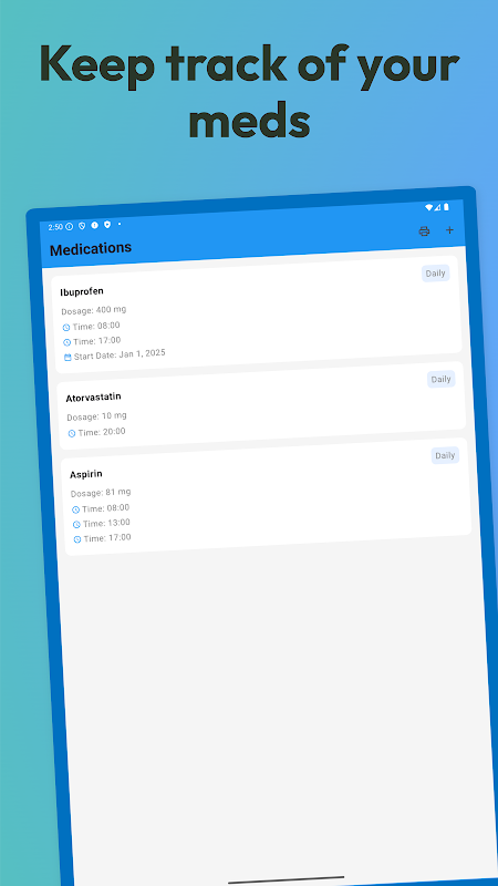 صارف دوست انٹرفیس: سادگی کو ذہن میں رکھتے ہوئے ڈیزائن کیا گیا، یہ ایپ استعمال میں آسان ہے، بدیہی نیویگیشن اور واضح بصری کے ساتھ جو آپ کی دوائیوں کے انتظام کو ہوا کا جھونکا بناتی ہے۔