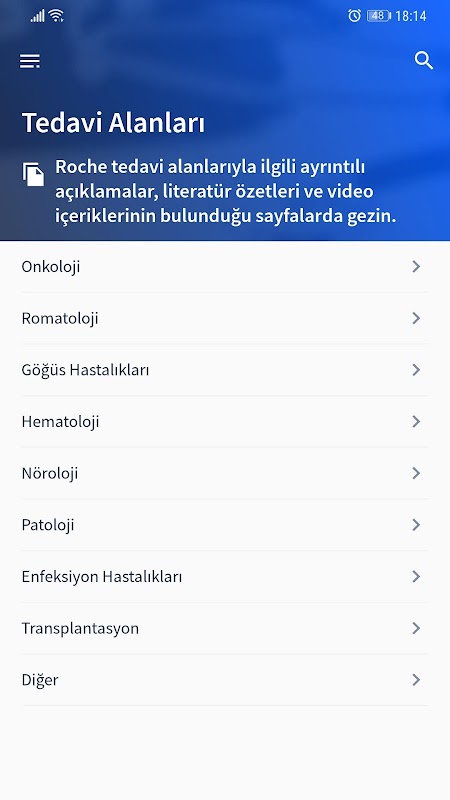 میڈیکیینک موبائل ایپلی کیشن روچے میستاہزارلاری سان۔ انکارپوریٹڈ صحت کی دیکھ بھال کرنے والے پیشہ ور افراد کے لئے ایک وسیلہ ہے جو علاج کے مختلف علاقوں میں موجودہ طبی معلومات تک رسائی حاصل کرسکتا ہے۔ درخواست میں درج ذیل خصوصیات شامل ہیں: