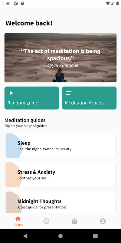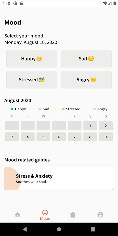 مراقبہ آپ کو پرسکون رہنے اور اپنے روزمرہ کے مزاج پر نظر رکھنے میں مدد کرتا ہے۔ کشیدگی ، نیند میں اضطراب کے انتظام سے کسی بھی ہدایت یافتہ مراقبہ کا انتخاب کریں۔ جب آپ اپنا موڈ ریکارڈ کریں یا کوئی مراقبہ مکمل کریں اور مزید مواد کو غیر مقفل کریں اور تناؤ سے پاک رہیں تو روزانہ سکے جمع کریں۔