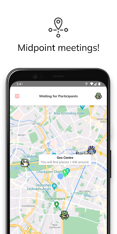 اگر آپ نے ابھی تک فیصلہ نہیں کیا ہے، تو نئی جگہیں تلاش کرنے کے لیے ہماری نئی تیار کردہ خصوصیت کا استعمال کریں۔ MeetUs تمام شرکاء کی پوزیشن کی بنیاد پر بارز/ریسٹورنٹ/کیفے اور بہت کچھ تجویز کریں گے۔ اس کے بعد آپ تمام شرکاء کے جغرافیائی مرکز میں واقع متعدد اختیارات میں سے انتخاب کر سکتے ہیں۔
