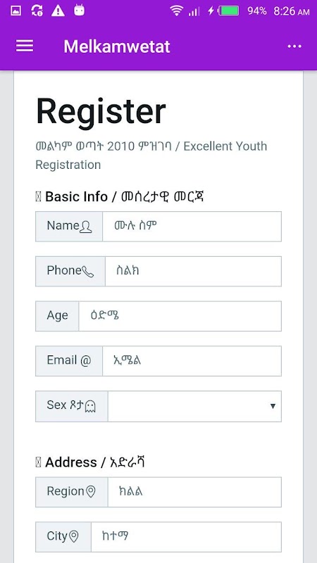 this application is use for melkam wetat registration the application is free.