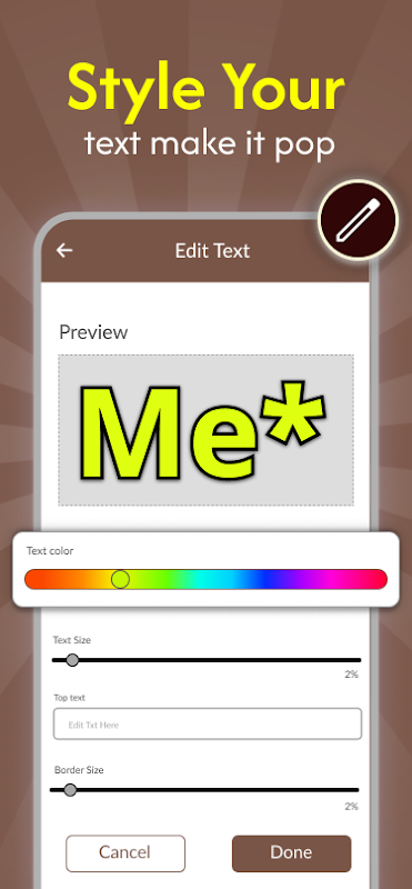 اپنی گیلری سے کوئی بھی تصویر آسانی سے درآمد کریں اور تصویر کے اوپر اور نیچے اپنا متن شامل کریں۔ پیچیدہ ٹیمپلیٹس یا پہلے سے تیار کردہ تصاویر کی ضرورت کے بغیر فوری طور پر ایک میم بنائیں۔