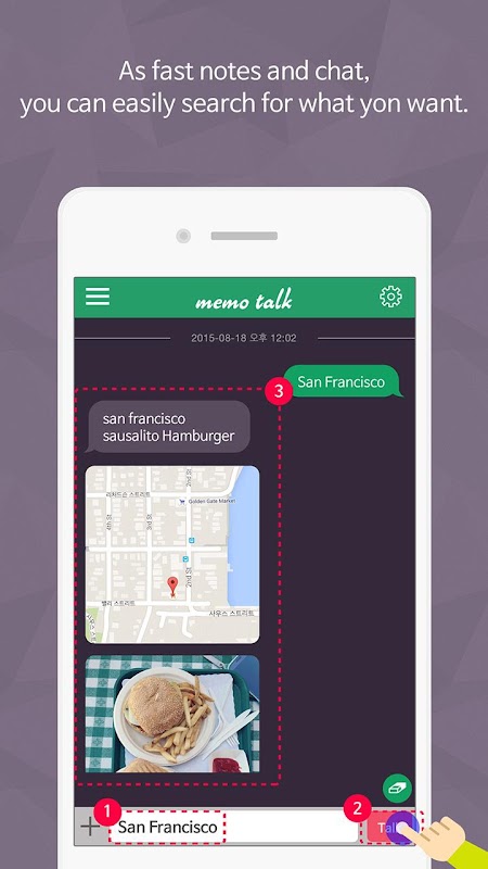 You can easily create a memo to the chat (Voice,Secret,Password,maps,capture)