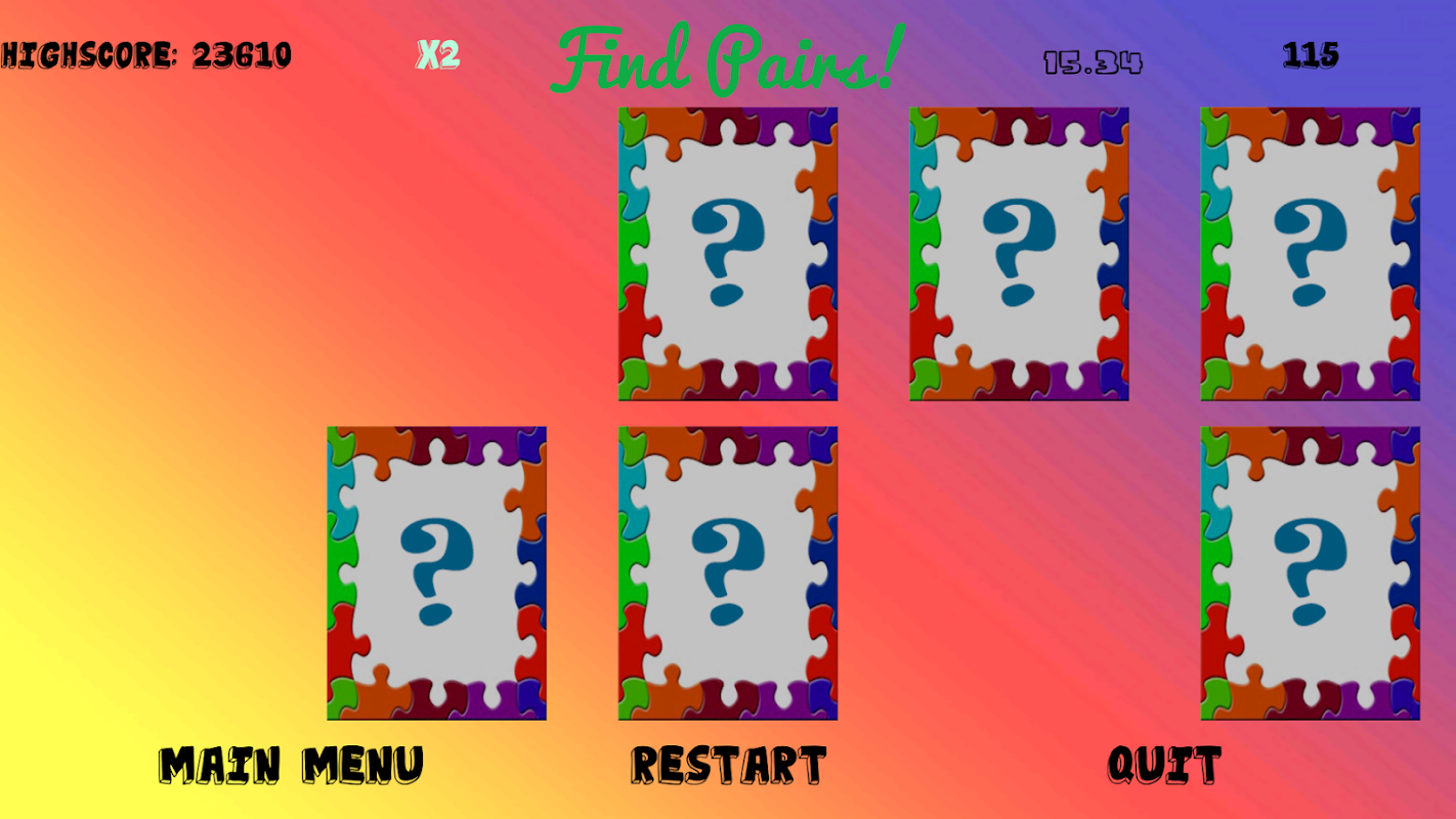 ★Three different play modes with the same goal, finding the matching pair among a set of cards.
