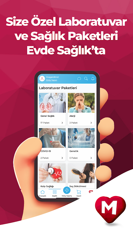 ہماری موبائل ایپلیکیشن کے ساتھ، ہماری تمام صحت کی خدمات، تقرریوں سے لے کر ٹیسٹ کے نتائج تک، گھریلو صحت کی خدمات سے لے کر اپنے یا اپنے پیاروں کے صحت کے اشارے تک، ایک ہی ٹچ کے ساتھ آپ کی انگلی پر ہیں!