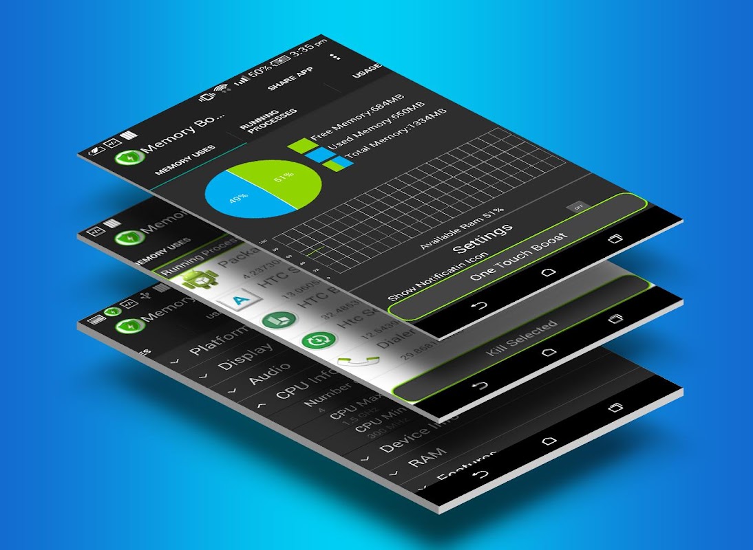 Memory Booster aims at enhancing system speed by resolving memory issues on Android devices with-