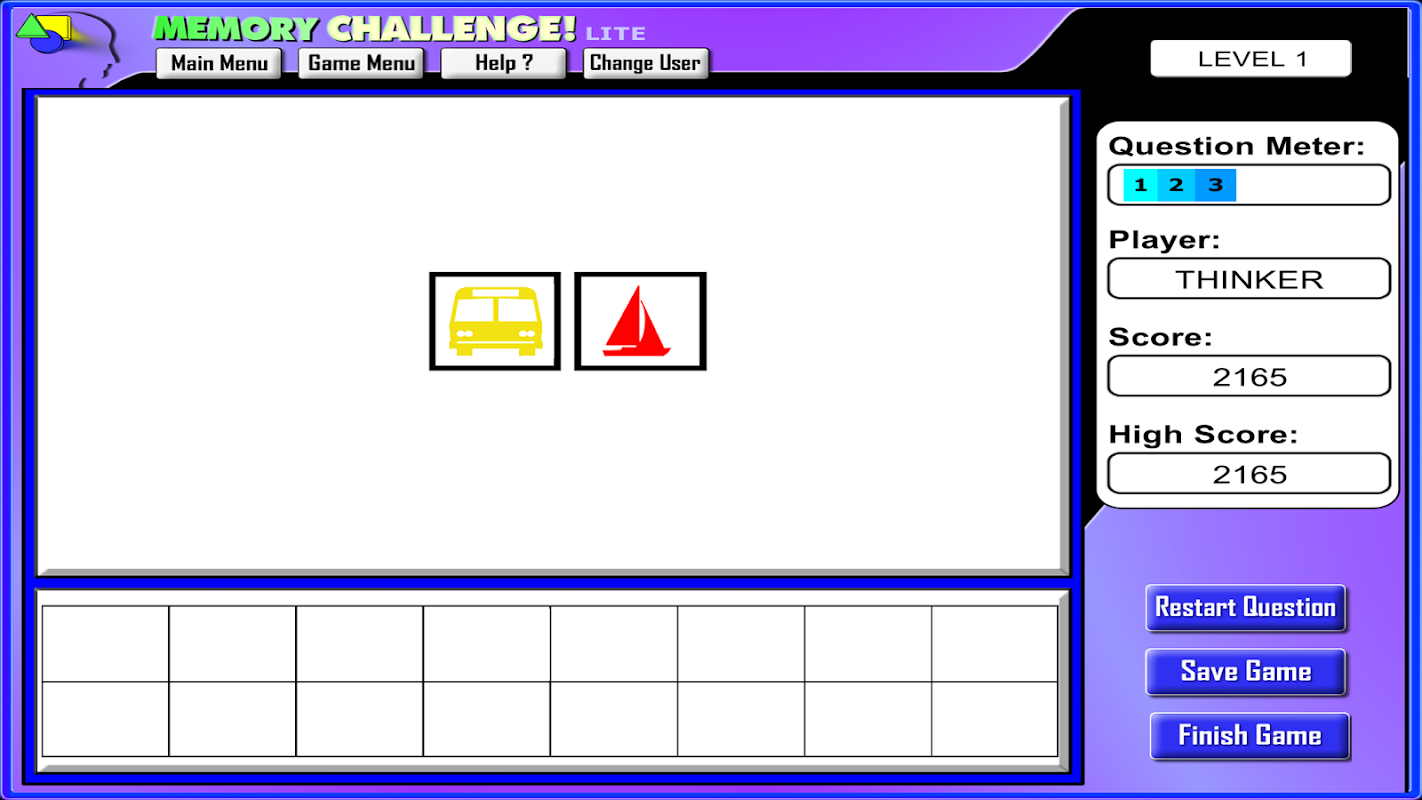 Memory Challenge! is an easy-to-use but very powerful program for developing and testing visual memory skills. Its beginning through advanced levels of challenge make it useful for students of all ages and abilities.