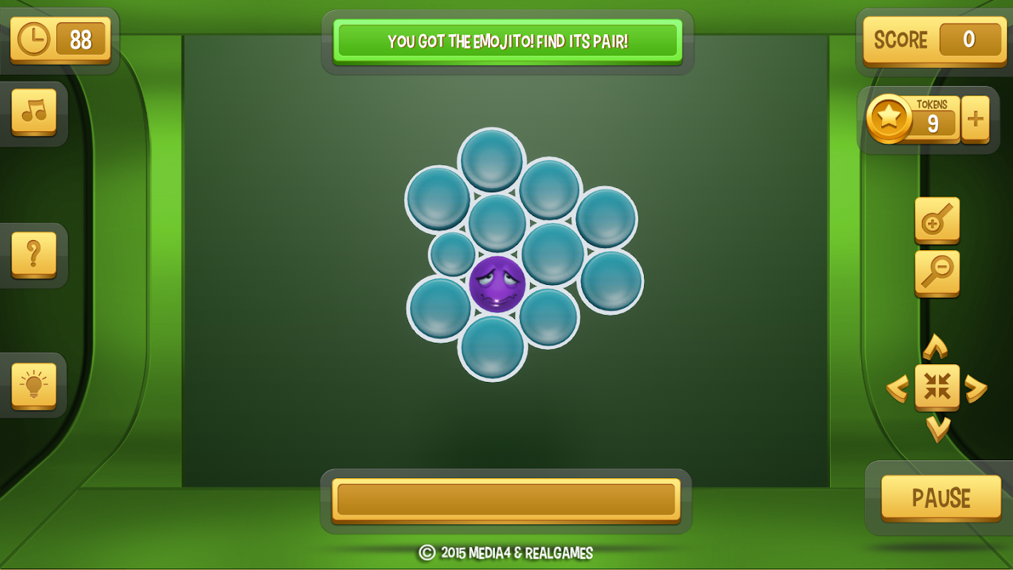 Test how well you distinguish colors and different emotions while enjoing a great and challenging gameplay. All of the emojitos are turned face down. Try to find all matching emojito pairs with less clicks and minimum time as possible to get higher score! Remember to use the Power-Up to find more pairs easily.