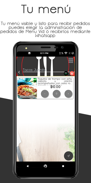 Menu Vid es la app que te permite promocionar tu ó tus restaurantes, platillos, snacks, bebidas, postres etc. Totalmente configurable para que tu negocio esté a la vanguardia del menú en QR, sin límite ni restricciones, es decir, añade cuantos restaurantes y platillos quieras.