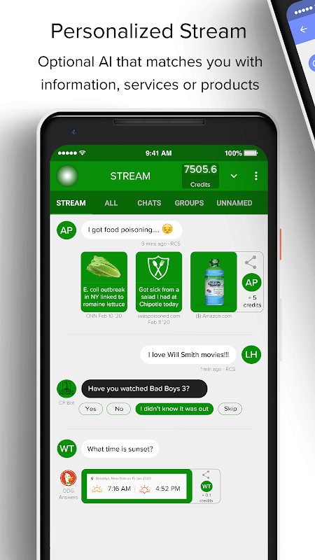 سٹریم: ایک بار فعال ہوجانے کے بعد ، ہر گفتگو میں ایک "سلسلہ" منسلک ہوتا ہے۔ ندی میں بہترین سوشل میڈیا اور انٹرنیٹ کا امتزاج کیا گیا ہے ، جہاں آپ کو اپنی گفتگو سے متعلق مواد ، جوابات اور معلومات کے ل recommendations سفارشات دی جاتی ہیں ، لیکن ایک علیحدہ اسکرین میں تاکہ یہ پریشان کن نہ ہو۔ اس تک رسائی کے لئے بائیں طرف سوائپ کریں۔
