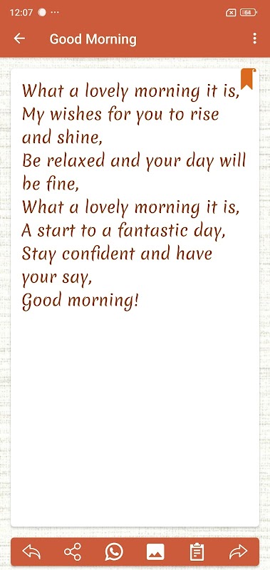 میسجز اور کوٹس وشز ایپ کے ساتھ، آپ اپنے پیاروں کے ساتھ اشتراک کرنے کے لیے ایس ایم ایس کی وسیع اقسام میں سے انتخاب کر سکتے ہیں، ہر جذبات اور تھیم کو پورا کرتے ہوئے۔ مزید برآں، آپ کے پاس پیغامات کو تصاویر میں تبدیل کرنے اور آسانی سے ان کا اشتراک کرنے کا اختیار ہے۔