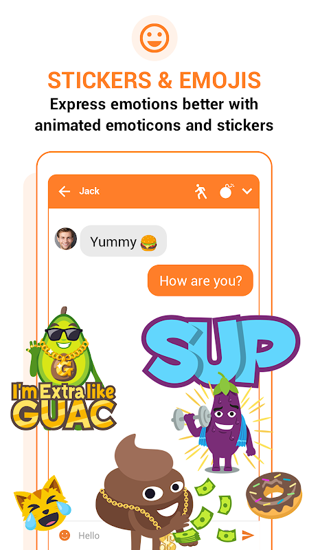 - جدید ایموجی کا استعمال کرتے ہوئے اپنے جذبات کا اظہار کریں - زبردست اسٹیکرز کے ساتھ پیغامات بھیجیں - بہتر چیٹنگ کے لیے اینیمیٹڈ ایموجیز کا لطف اٹھائیں