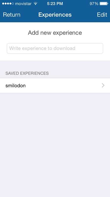 - The first time you access the application you must press "add / modify experiences," located in the central part of the screen; from this screen you can add experiences writing the name of experience you want to view; You can also manage you have downloaded to display.