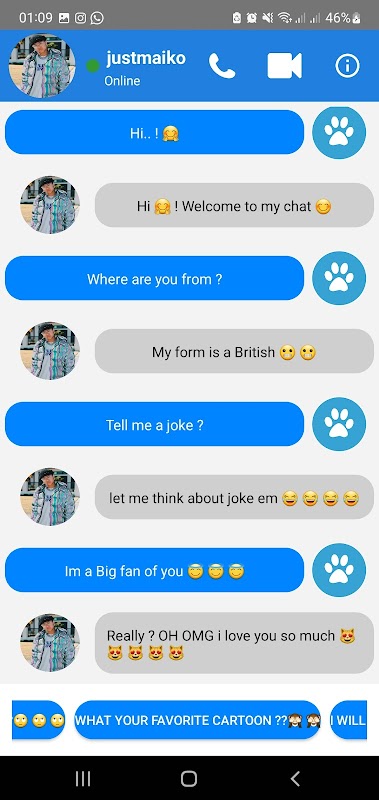 justmaiko fake video call and chat is a simple and easy application for you to make a fake video call with the famous tiktok star justmaiko and chat live with her in such a realistic way that no one can guess that it's fake and will cheer up all of your relatives,friends and family.