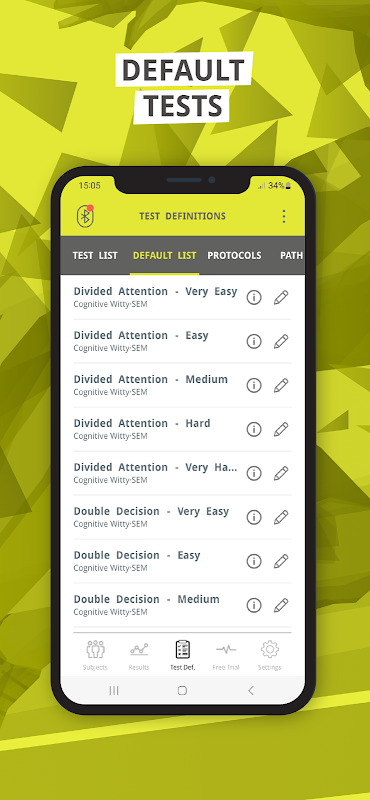 اے پی پی مختلف قسم کے ٹیسٹ پیش کرتی ہے اور استعمال شدہ آلات کے مطابق ترتیب میں زیادہ سے زیادہ لچک کی اجازت دیتی ہے۔