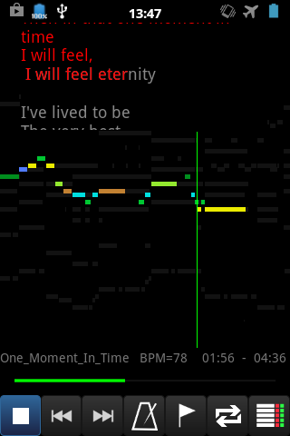 نیز نام نہاد "بلیک میدی" فائلیں (ملین نوٹ یا اس سے زیادہ) پوری طرح واپس چلائی جاسکتی ہیں۔ ڈسپلے کرنے کے لئے صرف نوٹوں کی تعداد کو محدود کرنے کی ضرورت ہے۔ آپ یہ نمبر مرتب کرسکتے ہیں -> کوشش کریں کہ آپ کا آلہ کتنے نوٹ لے سکتا ہے (جیسے گٹھ جوڑ 7 کے ساتھ 400.000 تک نوٹ)