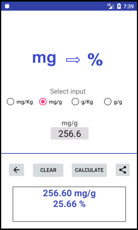 • Milligrams and percent(%) - Converter اسکرین شاٹ 2