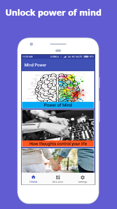 Get the most out of your day with our free mind app. We’ll help you perform at your best through the life-changing skills. Unlock power of mind & learn success ideas for happy life. In just a few minutes a day, you’ll learn how to train your mind and body for a healthier, happier life. All you have to do is download our free Mind: Unlock Superhuman Brain Power App. Start reading for couple of days. You will see massive improvement in your brain power skills and massive successful life. Learn about your abilities and mind power because your mind is the only thing which can direct you to the right path to success. The mind is the most powerful thing in this world. if you learn to use it then you can achieve anything you want. This will tell you about the law of attraction, the power of the mind, positive thinking, success tips, mind tips, map of success, performance tracking and much more.