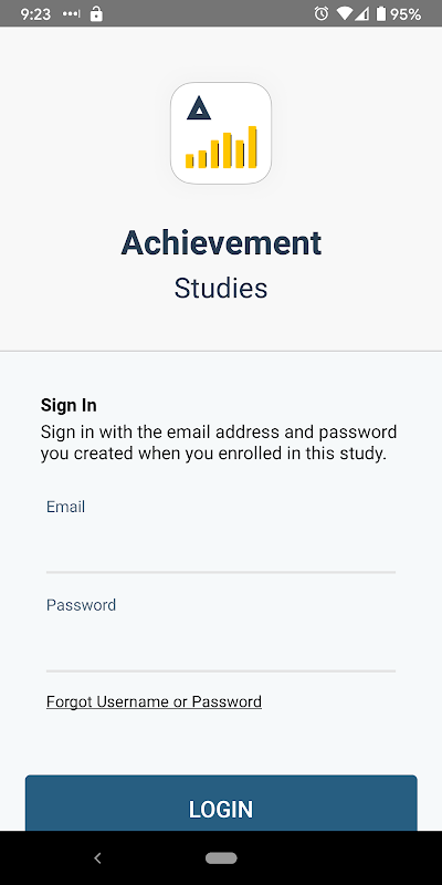اس مطالعے میں حصہ لینے کے ل you ، اندراج کے عمل سے آگے بڑھنے کے ل you ، آپ کو اندراج سے قبل کی سرگرمیاں مکمل کرنی چاہ studyں اور مطالعاتی قابلیت کے مخصوص معیار کو پورا کرنا ہوگا۔ مطالعہ کے شرکاء کو اچیومنٹ اسٹڈیز کی جانب سے ایپ ڈاؤن لوڈ کرنے کی ہدایت کرنے کے نوٹس موصول ہونے کے بعد ہی ایپ ڈاؤن لوڈ اور استعمال کرنا چاہئے۔