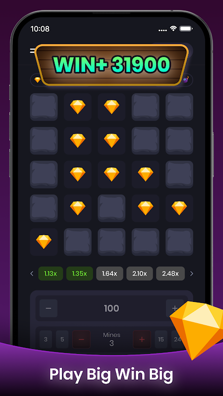 جب آپ اس گیم کو شروع کریں گے، آپ کو استعمال کرنے کے لیے 2000 ہیرے دیے جائیں گے، جو کہ ایک بہترین آغاز ہے۔ اس گیم کا انوکھا چیلنج یہ ہے کہ آپ گنتی ہیروں اور بارودی سرنگوں کو کس طرح تقسیم کرنے کا انتخاب کرتے ہیں۔ اگر آپ کم ہیرے اور زیادہ کانیں استعمال کرنے کا انتخاب کرتے ہیں تو ہیروں کی واپسی کی شرح زیادہ ہوگی۔ لیکن زیادہ ہیروں کا انتخاب کرنے سے بارودی سرنگوں پر قدم رکھنے کا خطرہ بھی بڑھ جائے گا، جیسے کہ اگر آپ ایک کان پر قدم رکھتے ہیں، تو آپ تمام ہیرے کھو دیں گے اور ہیروں کو جمع کرنے کے لیے دوبارہ شروع کرنا پڑے گا۔ یہ قسمت کا کھیل ہے جہاں آپ کا ہر انتخاب آپ کی جیت اور ہیرے کمانے میں شمار ہوتا ہے!