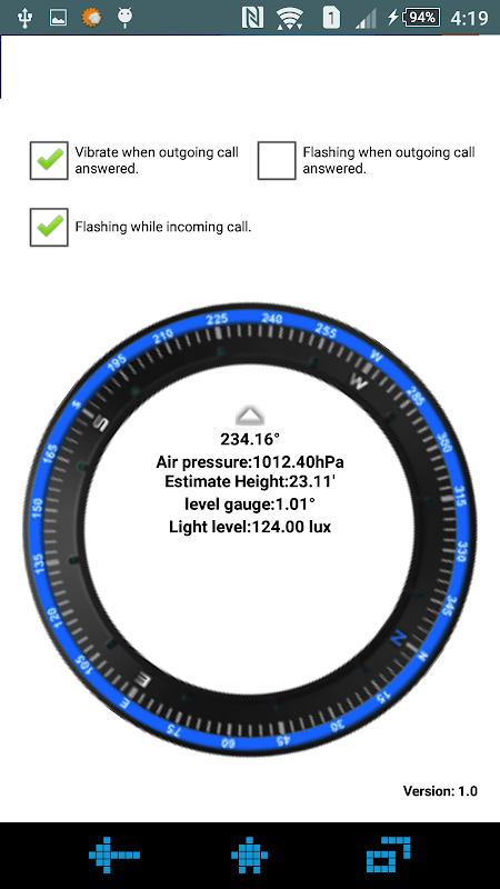 MiniTools featured compass, sensors reading and incoming call flash light.