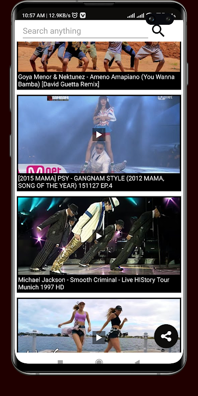 ویڈیوز ایم کے ویڈیو پلیئر کے اندر عمودی فہرست کی شکل میں ہیں۔