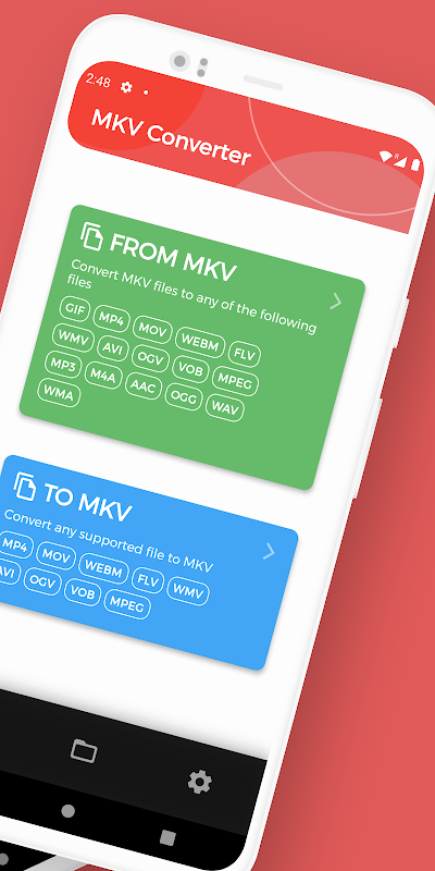 یہ تبادلوں کی ایپلی کیشن آپ کو کسی بھی ایم کے وی ویڈیو فائل کو دیگر فائلوں جی آئی ایف ، ایم پی 4 ، ایم او وی ، WEBM ، ایف ایل وی ، ڈبلیو ایم وی ، اے وی ، او جی وی ، وی او بی اور ایم پی ای جی میں تبدیل کرنے کی اجازت دیتی ہے ، یہ دیگر فائلوں کو ایم کے وی میں بھی تبدیل کر سکتی ہے۔