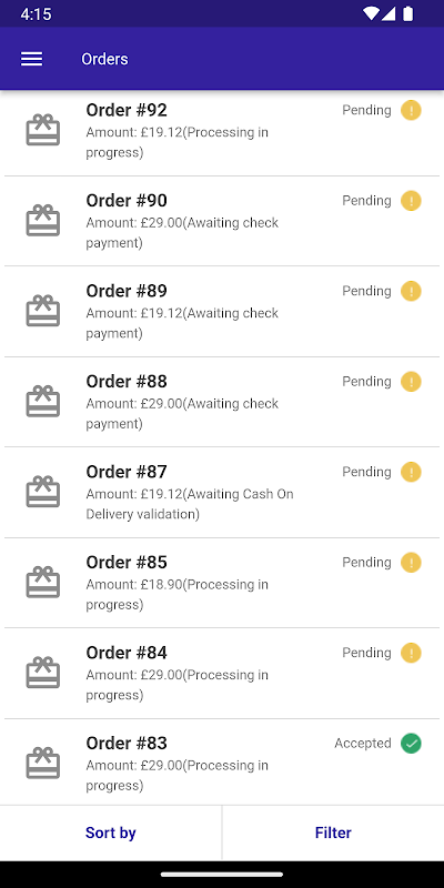 آرڈر ڈیلیوری اسٹیٹس کو ڈیلیوری بوائے کے ذریعہ درخواست سے قبول، مسترد اور لینے یا ڈیلیور کرنے کے لیے ترتیب دے کر منظم کیا جا سکتا ہے۔