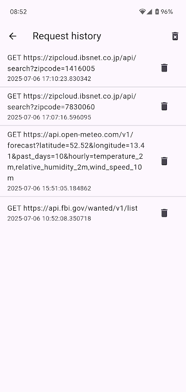 کامیاب API مواصلات کو تاریخ میں ریکارڈ کیا جاتا ہے، لہذا اسے دوبارہ چیک کرنا آسان ہے۔
