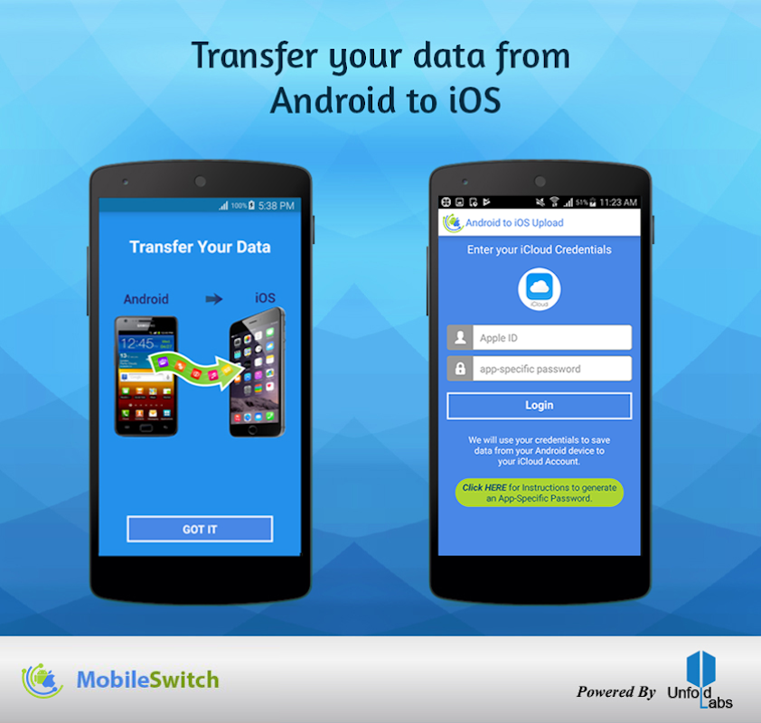1. Sign in to MobileSwitch using iCloud User Id/Password