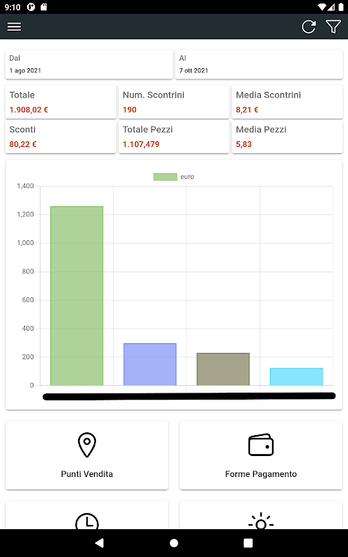 آپ کو دیکھنے کی اجازت دیتا ہے: جمع شدہ مقدار ، مقدار فروخت ، اوسط رسید اور رسیدوں کی تعداد۔