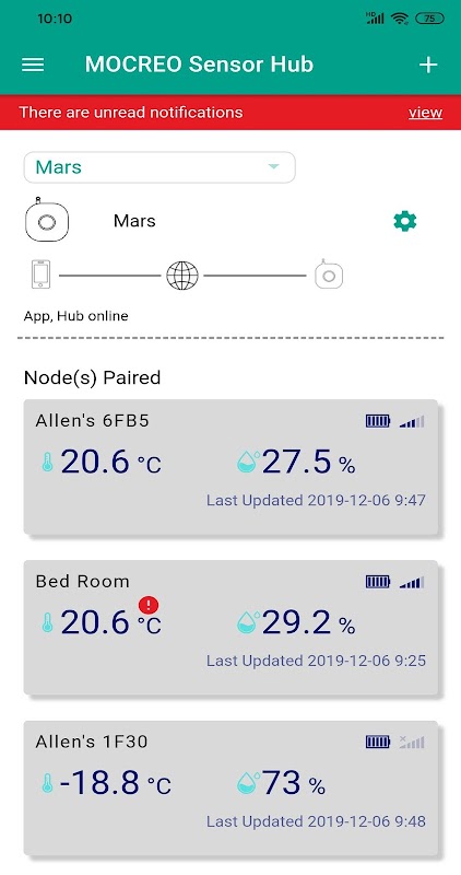 درجہ حرارت اور نمی کا سینسر اصل وقت میں محیط درجہ حرارت اور نمی کا پتہ لگاسکتا اور ریکارڈ کرسکتا ہے جو درجہ حرارت کی نمی میں آپ کے گھر کو یقینی بناتا ہے۔ اور موجودہ اور تاریخی ڈیٹا کو MOCREO Sensor App کے ذریعے ڈسپلے کریں۔