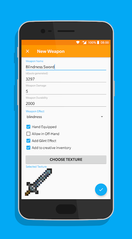 • Choose from over 100 pre-made textures for your items and blocks