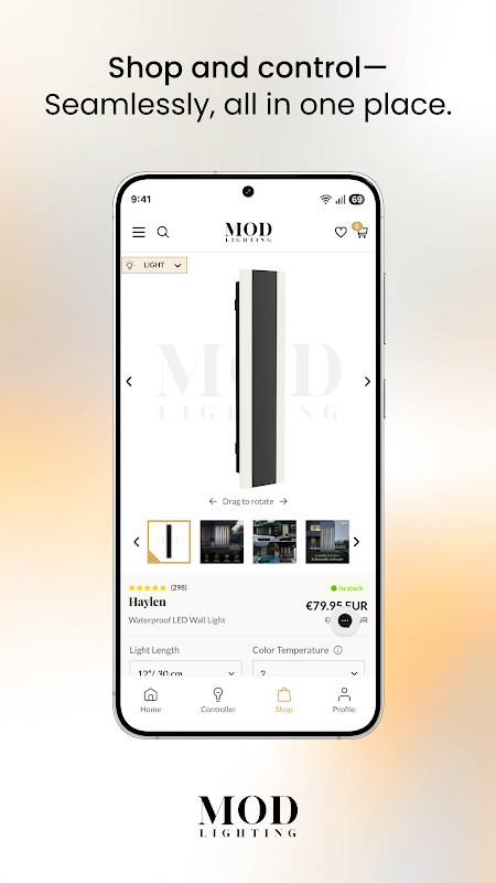 اس کے علاوہ، ایپ سے ہی ہمارے لگژری لائٹنگ کے تیار کردہ مجموعہ کو دریافت کریں اور خریداری کریں۔