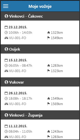 Pregled svih loko vožnji nalazi se u izborniku pod "Moje vožnje", a pregled obavljenih točenja pod "Moja točenja". Svi se podaci automatski šalju u web aplikaciju kojoj možete pristupiti putem računala i web preglednika:
