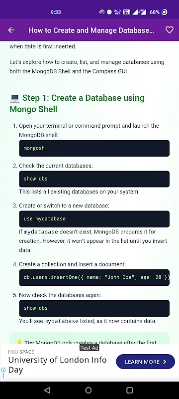 ⇢ مونگو ڈی بی ڈیٹا بیس بنائیں اور داخل کریں