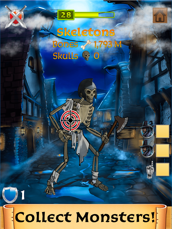 اپنی جدوجہد کے لئے اور طاقت حاصل کرنے کے لئے ہڈیوں کو جمع کرو اور << ایک راکشس شکاری بن جاؤ اور باس راکشس کو شکست دے کر اپنے شہر کو آزاد کرو!