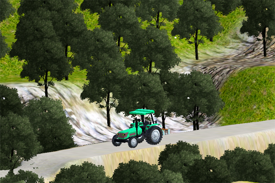 Mountain tractor for transferring food supplier. Cool Tractor simulator for sharing foods like