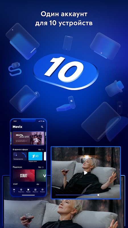 - تمام آلات پر اپنی پسندیدہ فلموں، ٹی وی سیریز اور ٹی وی چینلز تک رسائی حاصل کریں۔ موبائل ایپ میں دیکھنا شروع کریں اور Smart TV پر، ویب سائٹ یا Smart TV سیٹ ٹاپ باکس Movix Dom.ru پر دیکھنا جاری رکھیں۔ ایک سبسکرپشن کے ساتھ، آپ ایپ ڈاؤن لوڈ کر سکتے ہیں اور 10 ڈیوائسز پر اپنے پسندیدہ شوز دیکھ سکتے ہیں۔