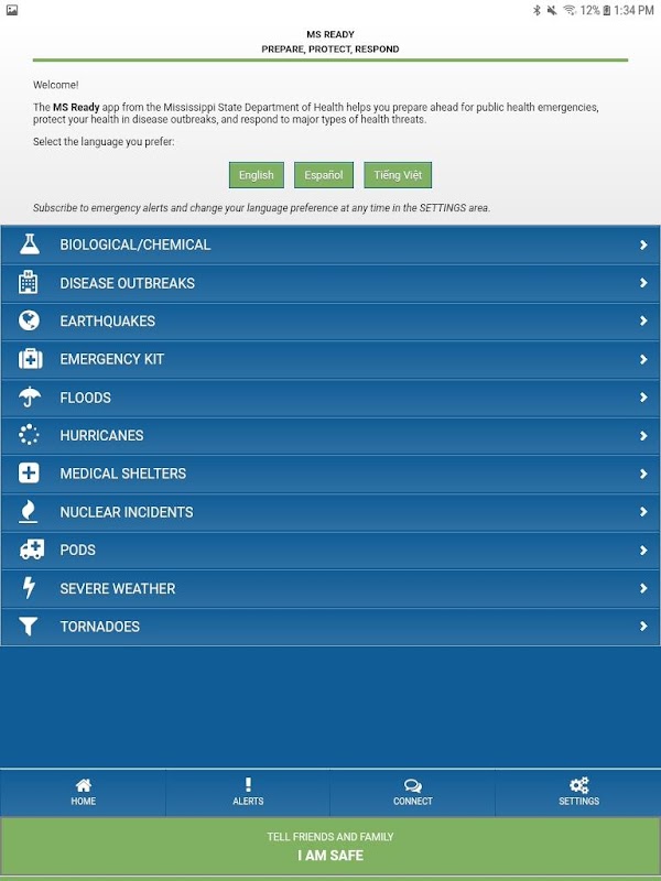 Use MS Ready to keep informed of public health and safety emergencies throughout Mississippi.