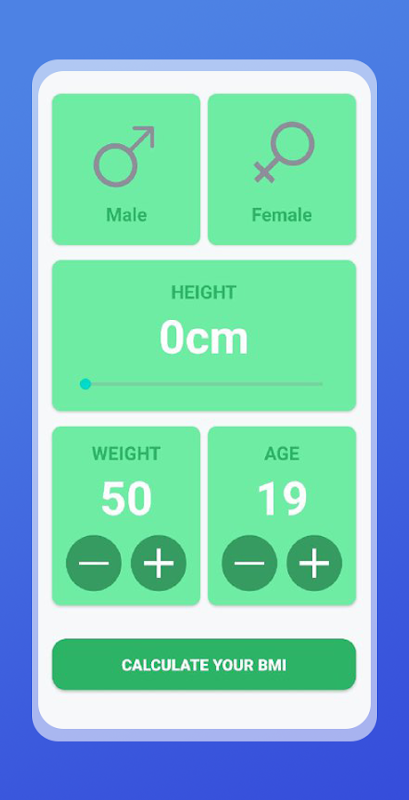 - ایک اسکرین میں BMI (باڈی ماس انڈیکس)، BFP (باڈی فیٹ پرسنٹیج) اور مثالی وزن کا حساب لگائیں۔