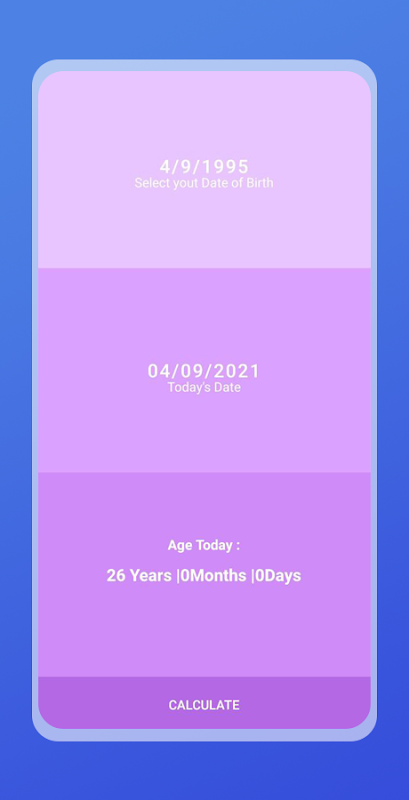ایپلی کیشن میں نارمل کیلکولیٹر، بی ایم آئی کیلکولیٹر، ایج کیلکولیٹر شامل ہیں۔