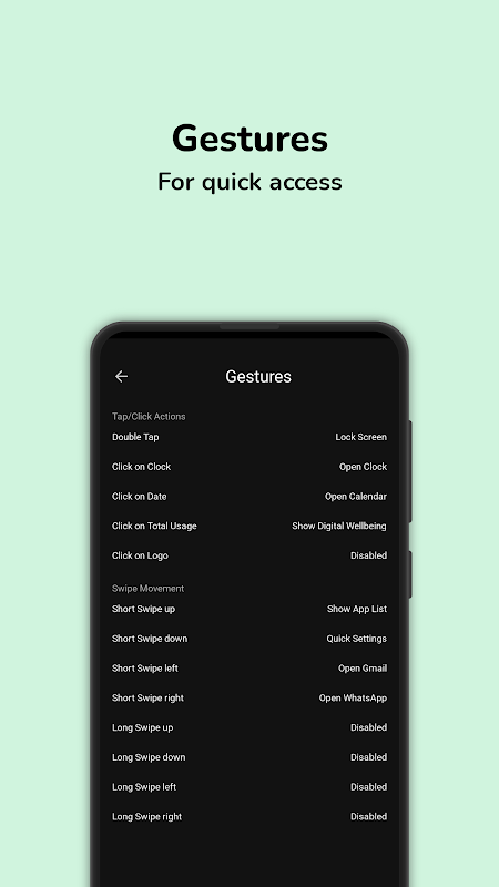 - اشاروں کے شارٹ کٹس: ڈبل ٹیپس، سوائپس اور مزید کے لیے حسب ضرورت ایکشن سیٹ کریں۔