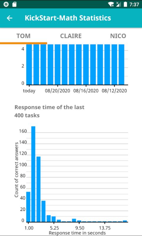 Outstanding fast mental math skills are quickly recognized so that the 100% learning goal will be achieved in less than 20 minutes. All other users will get their mental arithmetic up to speed supported by the app and with constant progress.