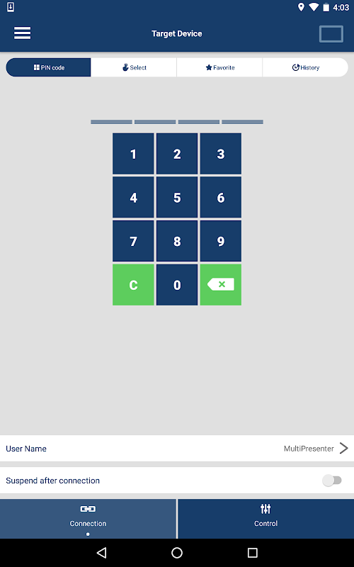 ایپلیکیشن ہر ڈیوائس پر دکھائی جانے والی اسکرین کو وصول کرنے والے آلات (ملٹی پریزنٹر اسٹک، پروجیکٹر) تک پہنچا سکتی ہے۔